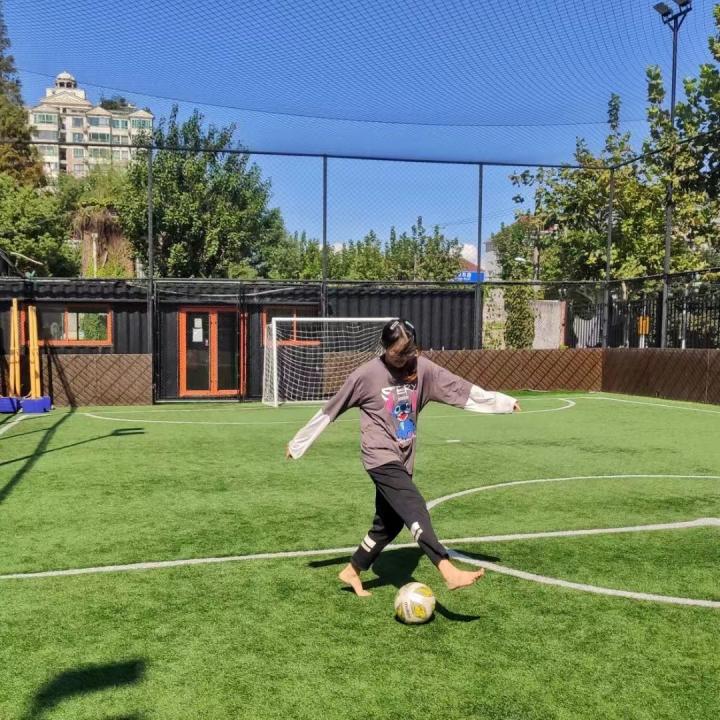 刚开始吴欣妍还有些胆怯,逐渐地她开始放开自己,享受踢球的快乐。