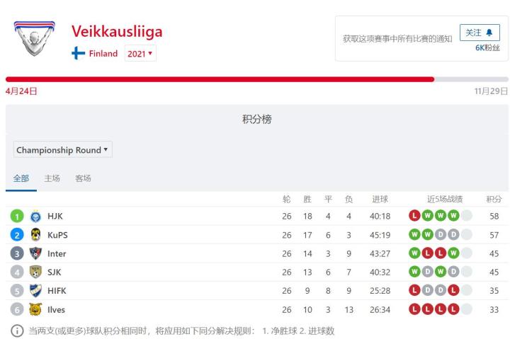 北京时间明天(2021年10月31日)晚上,2021赛季的芬超将迎来最后一轮的比赛。其中保级组的三场比赛将在北京时间21点开始,而争冠组的三场比赛将在北京时间23点开始。