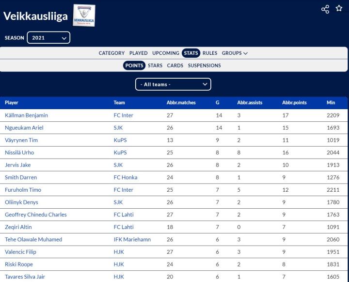 PS:本文章在2021年11月1日下午进行了修改,一是确认了今年的芬超不存在之前提到的欧协联资格赛附加赛,是芬兰杯冠军和联赛亚军季军直接获得3个欧协联资格赛名额。由于2021芬兰杯冠军古比斯获得联赛亚军,联赛第4名图尔库国际获得欧协联资格赛名额;二是确认了芬超的金靴评选规则,如果进球一样比较助攻数。作者为之前报道的不周向各位看客表示抱歉。