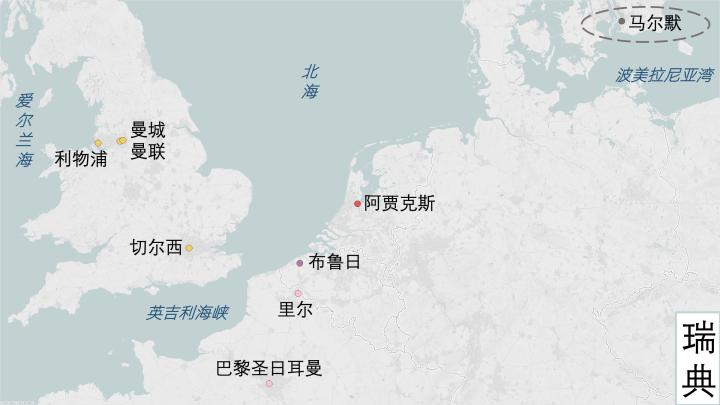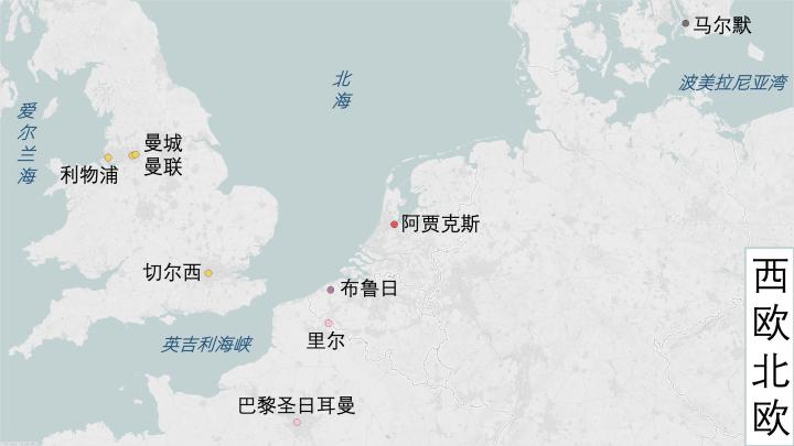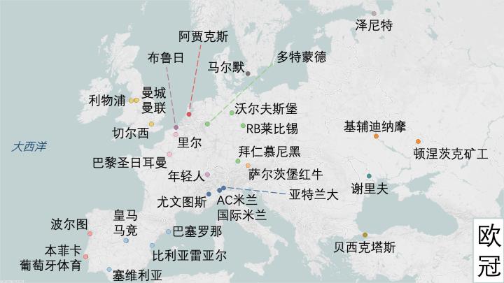 本赛季所有欧冠参赛球队的地理分布到这里就介绍完毕了,关于南欧、中欧和东欧的球队,您可以查看前两期的内容。