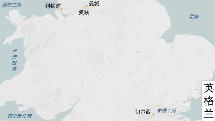 除切尔西外,本赛季英超的另外3支欧冠球队都在英格兰西北大区,大曼彻斯特都市郡的曼市双雄和默西塞德郡的利物浦。