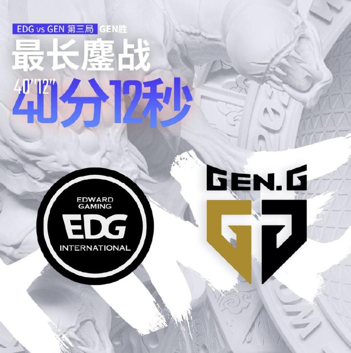 最短时长来自DK对阵T1第一局,DK仅用时29分4秒战胜T1;最长时长来自EDG对阵GEN第三局,GEN用时40分12秒赢下比赛。