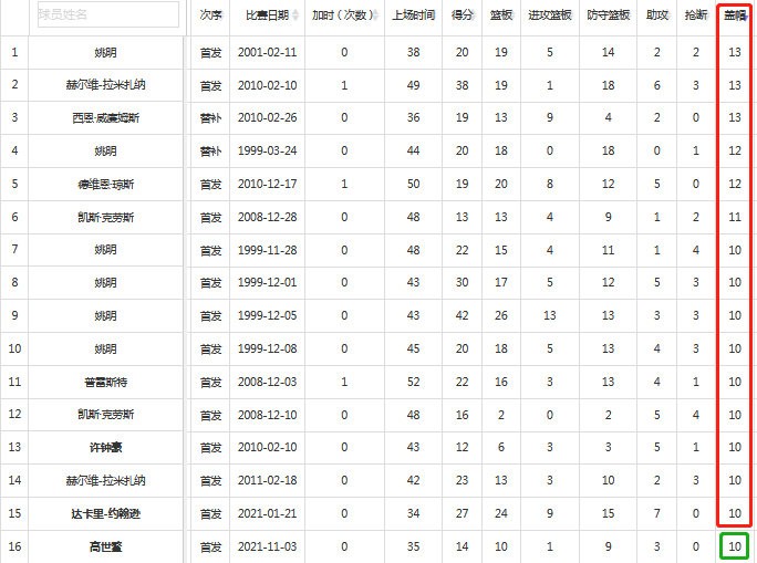 值得一提的是,CBA单场盖帽数的保持者同样是姚明,他曾单场送出13次盖帽。