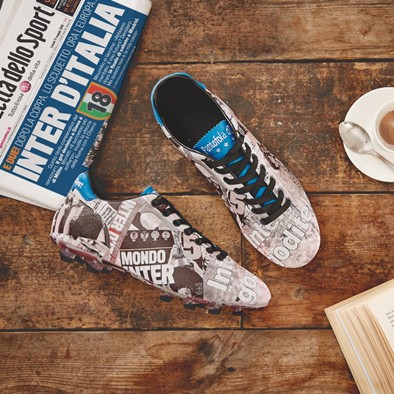 同时发布的还有国际米兰版本,蓝色成为后跟和鞋舌的主色调,款式名称也是采用了国际米兰球迷的意大利语名字Nerazzuri,刺绣图片采用了2009-2010那个梦幻赛季在魔力鸟带领下勇夺三冠王的主要片段。