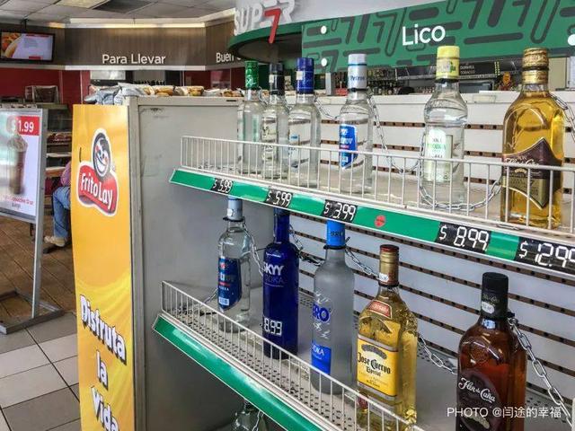 不仅如此,超市里面也做了防盗措施。折合成人民币一百块钱左右的酒,在这里算是贵重物品。人们会把货架上的酒,用铁链子拴起来,以防被偷被盗。顾客想要哪瓶,再解锁拿出来。“(来自网友“闫途的幸福”游记)