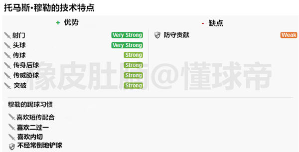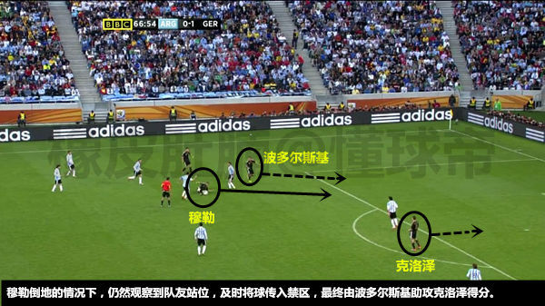施魏因斯泰格曾经对媒体说过,不仅仅是对手无法判断托马斯的跑位,有时甚至是队友,都无法准确地知道托马斯下一秒将出现在哪里。也许施魏因斯泰格的这句话,最能直观地将穆勒的技术特点概括出来。