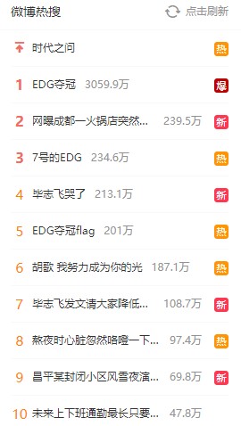 EDG夺冠实时热搜榜