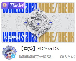 在b站、腾讯等视频直播网站,EDGvsDK的赛事直播毫无悬念地霸占当天首页第一位,其中b站官方直播间一度达到了近4亿人气值。