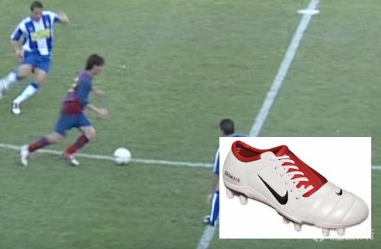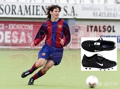 再往后一段时间,我们找到了一张清晰的照片,显示梅西确实穿着经典的Tiempo Premier。Tiempo Premier是耐克进军足球鞋领域的开山之作,而梅西正是穿着这双鞋在巴萨起步,所以说小跳蚤和耐克还是很有缘分的。这双鞋陪着梅西在各层梯队一起进行了无数的训练和比赛,帮助他打下了牢靠的技术功底。