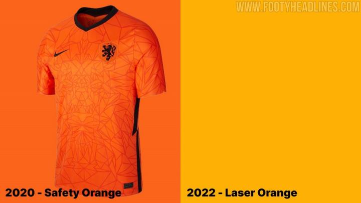 与目前荷兰国家队所穿的“安全橙色”主场球衣相比,FOOTYHEADLINES爆料的荷兰国家队2022年世界杯主场球衣采用了色彩更浅的“激光橙色”。事实上,这一颜色在上世纪80年末以及90年代初曾用于荷兰国家队主场球衣,例如1988年欧洲杯主场球衣以及1990年世界杯主场球衣。