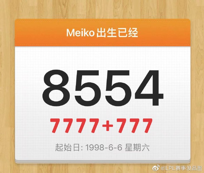 决赛当天是EDG对手DK的中单ShowMaker出生的第7777天,而EDG辅助Meiko正好比许秀大了777天;