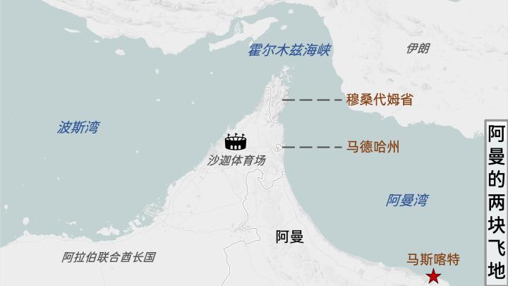 最有趣的是穆桑代姆省的马德哈州,它四面被阿联酋包围,而它自己又包围着阿联酋沙迦酋长国的那赫瓦村,让这个小村子成为一块“飞地中的飞地”。值得一题的是,今天国足与阿曼的比赛,就在沙迦体育场进行,这座体育场距离阿曼很近,只有几十公里,本该是我们的主场几乎成了阿曼的主场。