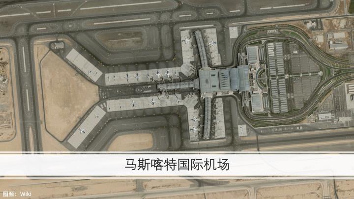 马斯喀特的新城区在城市西部,最西面的马斯喀特国际机场拥有两条跑道,并在2018年启用了新航站楼。