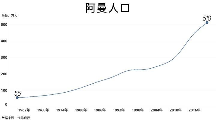 从人口来看,阿曼只用了50年就把人口翻了9倍,虽然有一定程度的人口增长是由于印度、巴基斯坦等国的移民而产生的,但主要因素还是阿曼自身的高生育率。