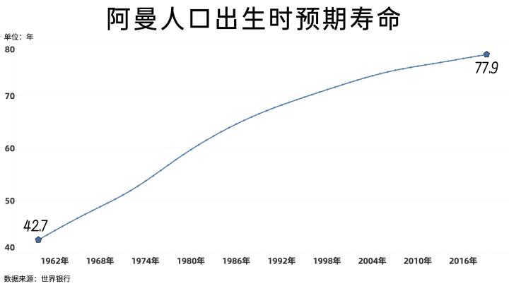 在人口数量快速增长的同时,阿曼人的预期寿命也获得了大幅提升,不过因为总生育率比较高,年轻人很多,阿曼短时间内还不会进入老龄化社会。