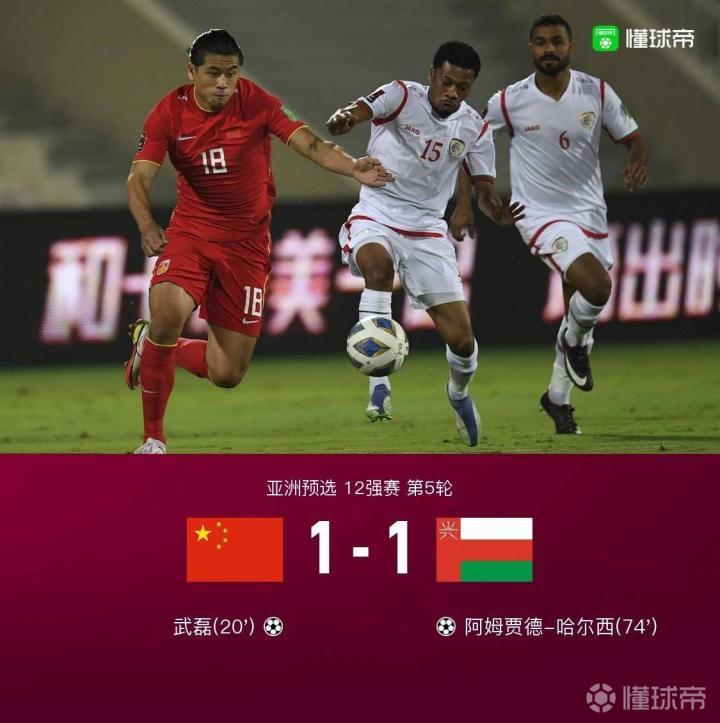 【漓泉啤酒老炮战报:国足1-1阿曼仍居第5,武磊破门+错失良机】