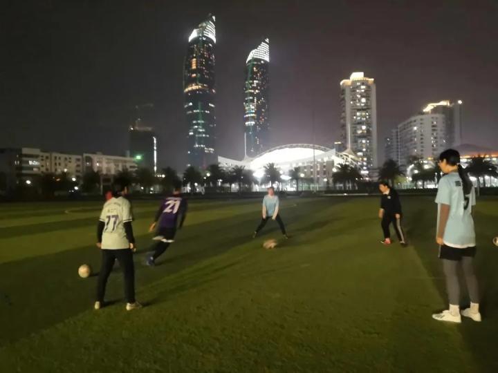 女足队员们第一次体验到了“十一人制”的赛场,持续一两个小时的比赛让演武场的夜空充满欢声笑语,人人大汗淋漓却意犹未尽。外新联队也颇有兴致,相约时常“过招”。