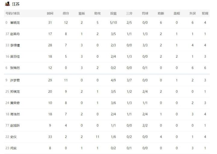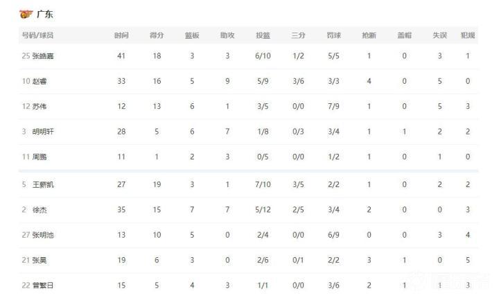 次节回来,江苏进攻依然滞涩,此役内线缺少吴冠希的他们,只能依靠零敲碎打的进攻拿到分数,广东这边则继续乘胜追击,多点开花不断拉开比分,半场战罢,广东53-31遥遥领先。