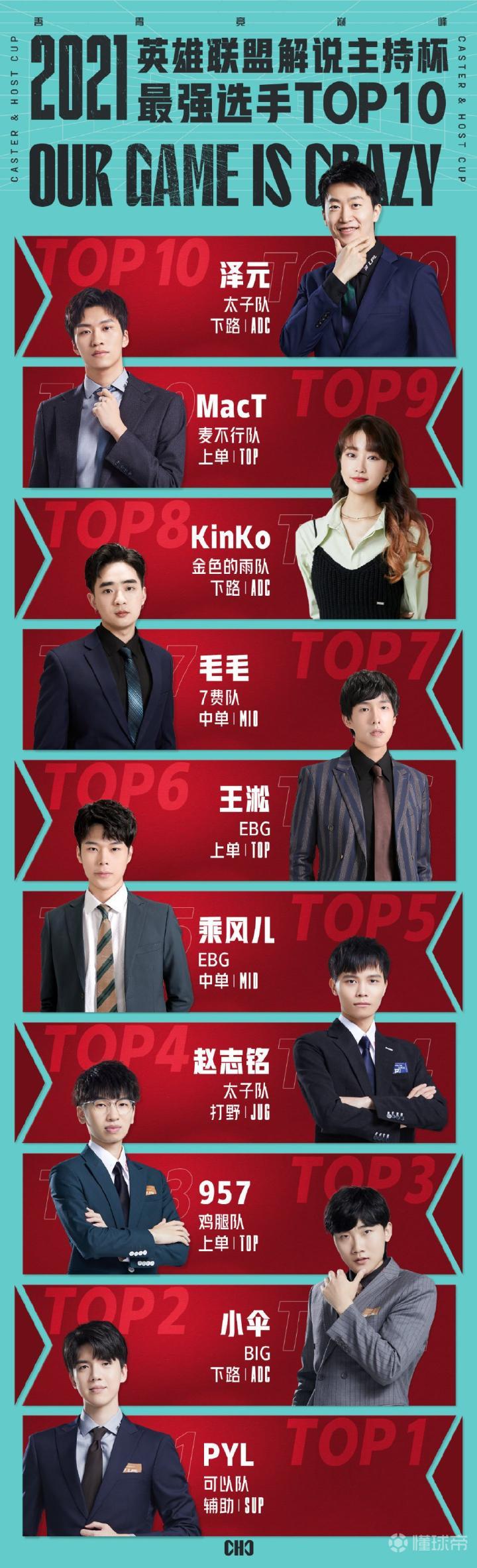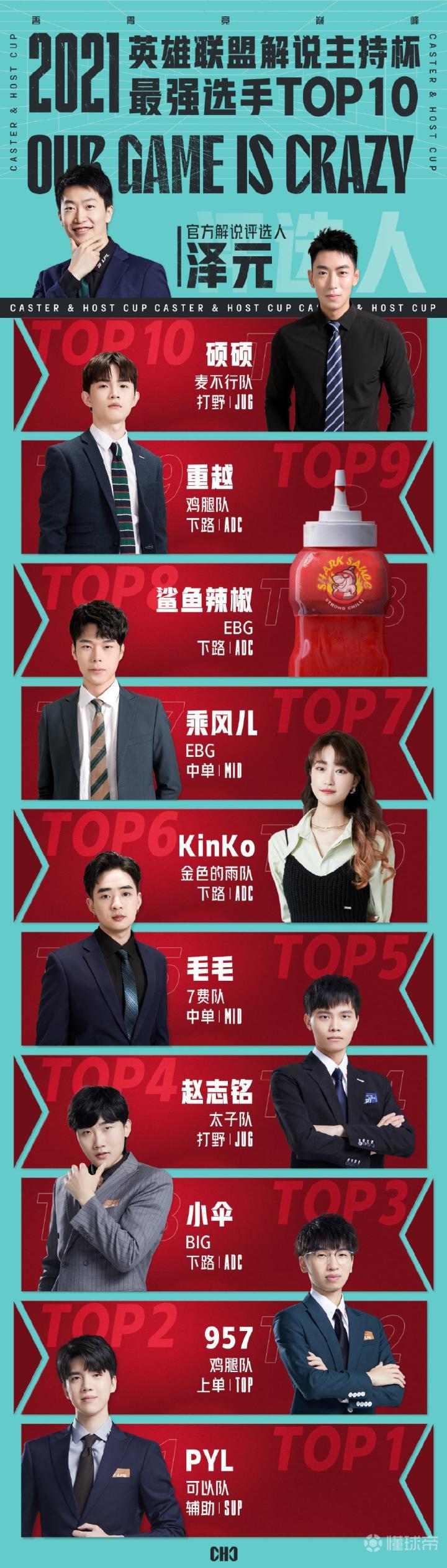 2021英雄联盟解说主持杯选手TOP10:PYL、小伞、957分列前三