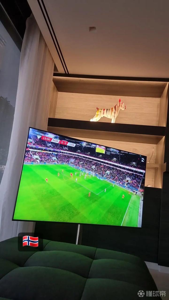 欧洲区世预赛,挪威主场对阵拉脱维亚,哈兰德在个人社交媒体晒出自己在电视机前支持球队的动态。