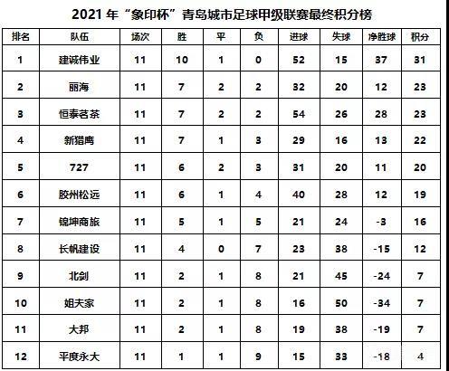2021青岛城市足球甲级联赛共有12支俱乐部(球...潇栋- @懂球帝2021-11-15 19:372021青岛城市足球甲级联赛共有12支俱乐部(球队)参赛,进行11轮66场比赛,青岛建诚伟业足球队、青岛丽海足球俱乐部、青岛恒泰茗茶足球队分获联赛前三名。此外,青岛建诚伟业足球队、青岛恒泰茗茶足球队、青岛北剑足球队、青岛胶州松远足球队等四支球队获得公平竞赛球队奖。展开更多
