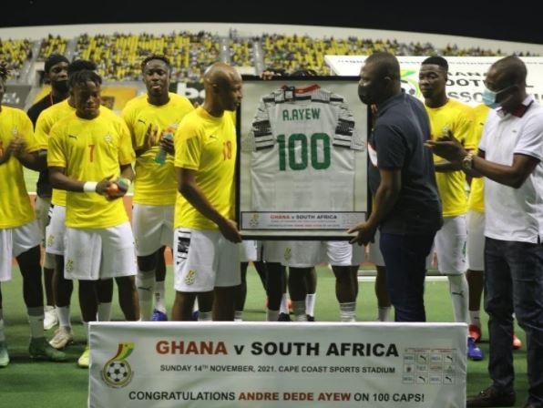 2022世界杯非洲区预选赛40强赛最后一轮,凭借安德烈-阿尤的进球,加纳1-0战胜南非成功进入10强赛,值得一提的是这也是安德烈-阿尤代表加纳国家队出场的第100场比赛。赛后,包括托马斯、阿马泰在内的多位加纳队友都为其送上祝福。