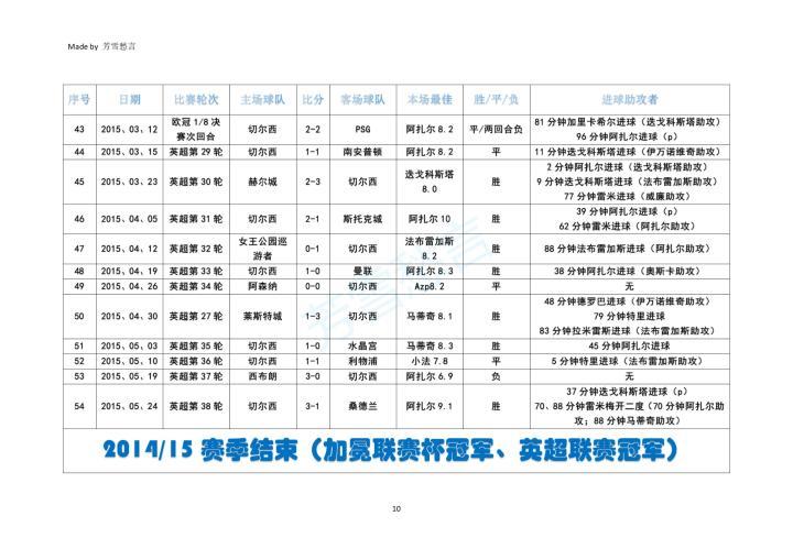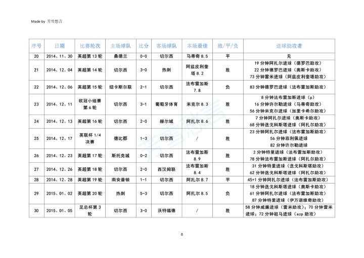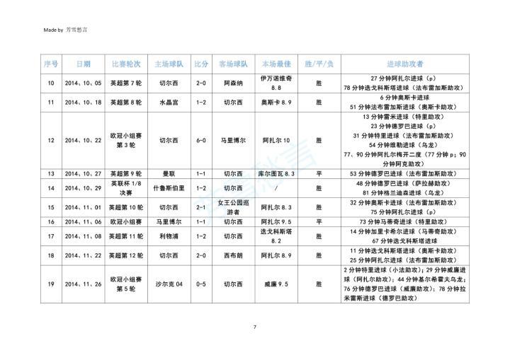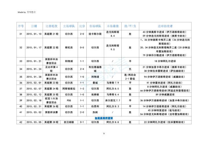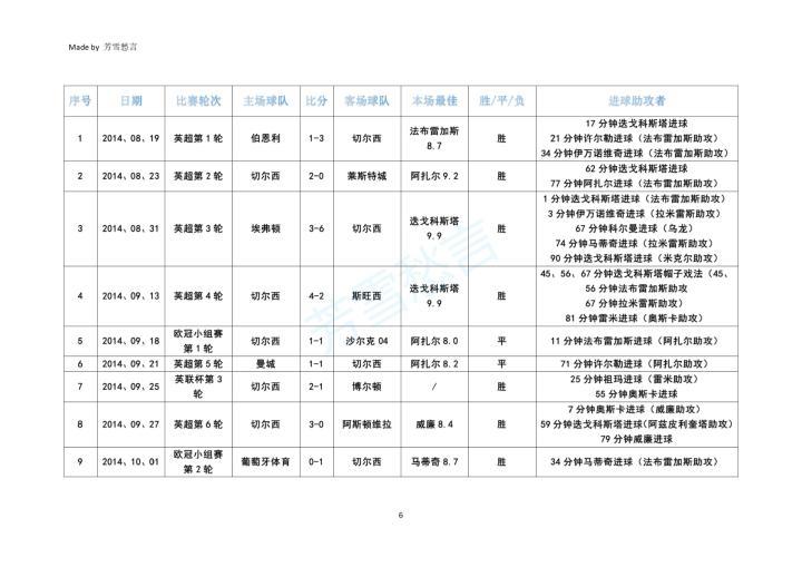 穆里尼奥切尔西二期比赛全纪录——2014/15赛季