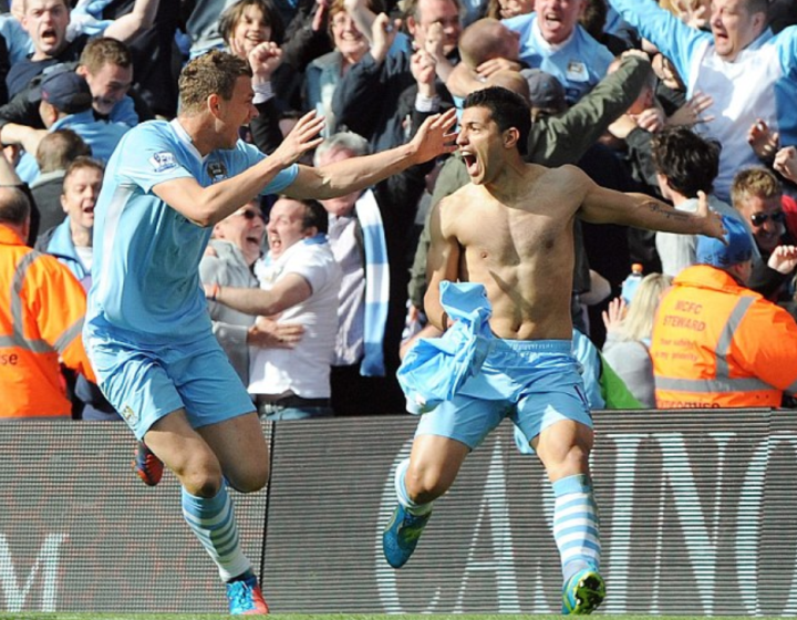 (图)多年后,阿奎罗的进球让曼城捧起了队史上第三座顶级联赛冠军奖杯