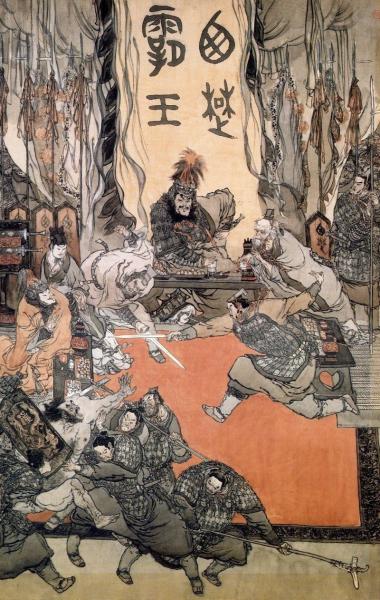 项羽早年跟随叔父项梁在吴中起义反秦,项梁阵亡后他率军渡河救赵王歇,于巨鹿之战击破章邯、王离领导的秦军主力。秦亡后称西楚霸王,定都彭城,实行分封制,封灭秦功臣及六国贵族为王。后与刘邦展开了数年的“楚汉之争”。前202年,项羽在垓下之战为刘邦指挥诸侯六十万联军所败,突围至乌江后,自刎而死。