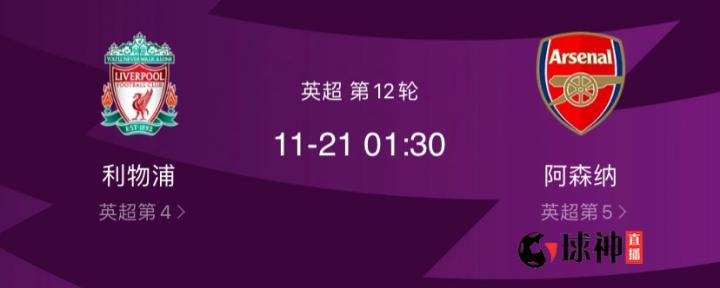 球动我动心动北京时间2021年11月21日凌晨1点30分,英格兰超级联赛第12轮即将拉开帷幕,利物浦和阿森纳将会在安菲尔德球场展开一场大战。