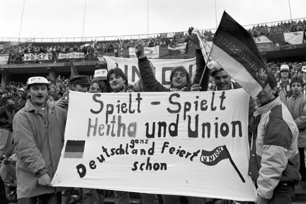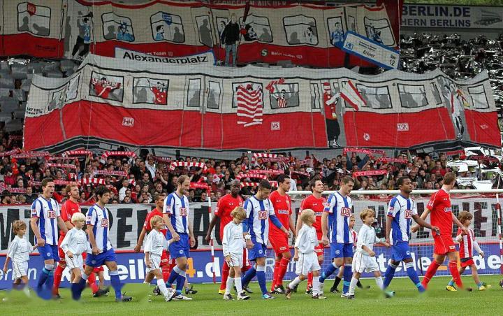 1990年1月27日,柏林赫塔与柏林联合在柏林奥林匹克体育场进行了柏林墙倒塌后的一场友谊赛,最终柏林赫塔2-1取胜,双方球迷以分别来自东西德的马克货币来支付票价,上座人数官方报告里写着51,270人,但有人认为实际人数应该更高。比赛结束后,两队队员还一起去吃饭庆祝,曾经效力赫塔的前锋克雷奇默回忆说:“两队球迷彼此相拥,无论输赢,一起庆祝。”这便是属于柏林人的庆典,是代表柏林人团结一致的闪亮历史符号,却也是双方黄金友谊的最后时刻。