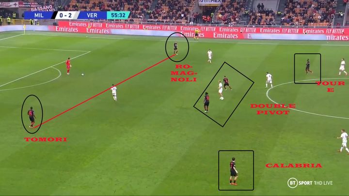 米兰无球时的一个关键原则就是压迫。米兰通过压迫战胜了亚特兰大,在对博洛尼亚的比赛中(第一粒进球)也能看出压迫的作用,在对罗马的比赛中也在大量地压迫对手。