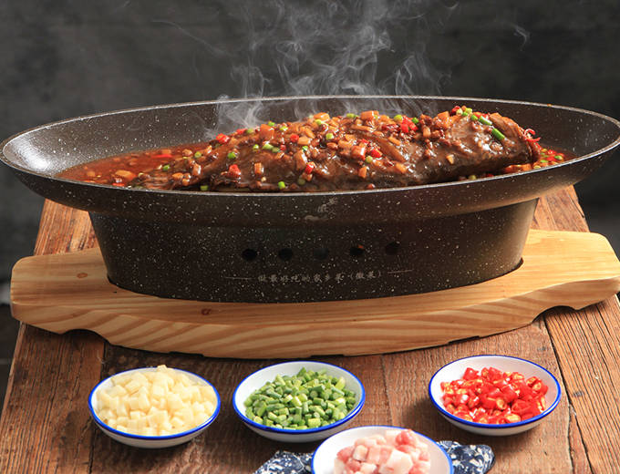 臭鳜鱼是安徽沿江一带最出名的佳肴之一,也是徽州水产类传统名菜。新鲜的徽州自产桃花鳜用盐或浓鲜的肉卤腌制,再用传统的烹调方法烧制,故称"腌鲜鳜"。此菜香鲜透骨,鱼肉酥烂,是徽式风味名菜中最具代表性的菜品。