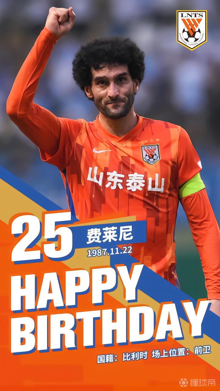 今天是比利时球员费莱尼的34岁生日,山东泰山俱乐部在这天为其送上生日祝福。
