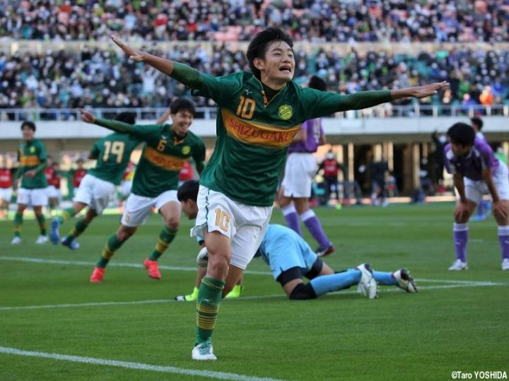 还有一个多月,第100届全日本高中足球锦标赛就要拉开帷幕。这次代表静冈县出战的,是在地方大会决赛中战胜藤枝东的足球传统名校静冈学园。这是他们在2020年初的第98届全国大赛夺冠之后,时隔2年重返这一赛场。值得一提的是,在这支球队即将出征全国大赛的时候,队中已经有4名高三选手拿到了J联赛球队的offer内定。(下图从左至右)他们分别是日本U18代表队选手伊东进之辅(北九州向日葵,中后卫)、玄理吾(德岛旋涡,中场)、古川阳介(磐田喜悦,中场)、川谷凪(清水鼓动,前锋)。