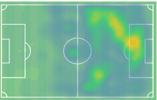 伯卡特是一个全能的攻击手,看看他下面的热图就可以证明这一点,然而,他的主要位置是前锋,57%的时间伯卡特打中路。他也可以移动到边路和左路,也可以打内锋,但他主要打中路。本赛季,在美因茨的战术中,奥尼西沃在右边,伯卡特在左边,他们组成了一个致命的搭档,伯卡特五个进球和奥尼西沃的四次助攻。