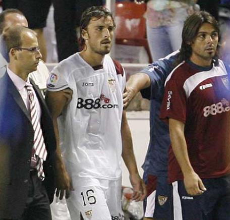 正当塞维利亚士气旺盛时,普埃尔塔却在比赛第31分钟时倒在了本方禁区内,他没有受到任何冲撞,他的倒地如此突然。