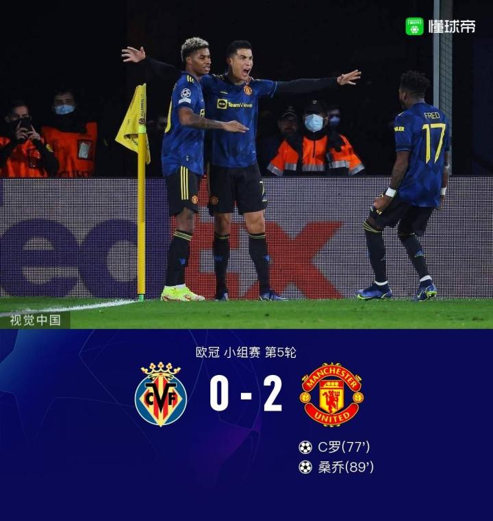 北京时间11月24日01:45,欧冠小组赛第五轮,曼联客场挑战比利亚雷亚尔。上半场比利亚雷亚尔稍占优势,进攻也更具威胁,德赫亚神扑救险;下半场德赫亚再献神扑,C罗吊射破门,桑乔锁定胜局。最终,曼联2-0比利亚雷亚尔,提前一轮小组出线。