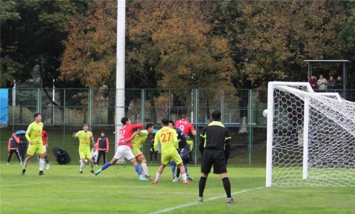比赛来到上半场补时阶段。江苏中南珂缔缘获得角球机会,尹韩龙主罚将皮球送至小禁区,对方门将出击失误皮球被碰入球门,可惜主裁判吹罚江苏中南珂缔缘冲撞门将在先,进球无效。