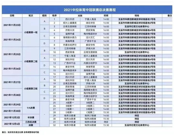 ▲赛程表