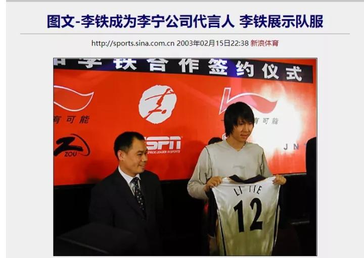资料显示:李铁和李宁的合作要追溯到18年前。2003年2月15日,李铁与李宁公司签订合作协议,正式成为该公司足球系列产品代言人,也成为了李宁公司即将开发的专业足球产品的签约球员。当时,李铁在英格兰顶级联赛球队埃弗顿效力。