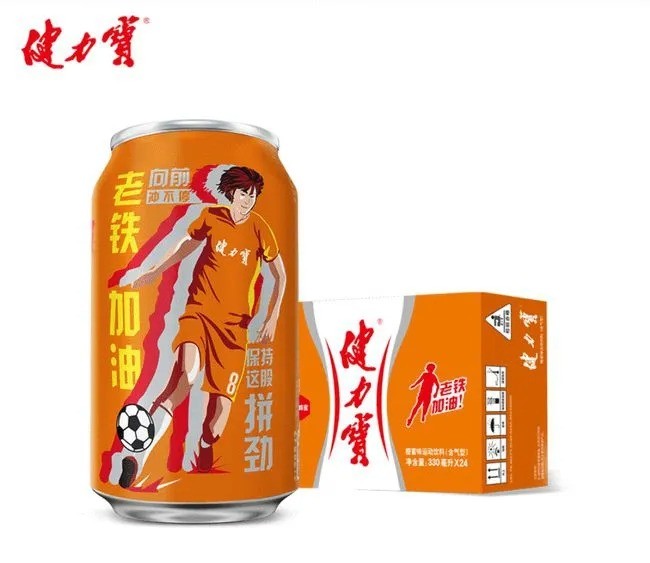 今年6月,国足打入12强赛后,健力宝又推出了一款健力宝×李铁联名罐。8月28日,李铁也发出一条微博,祝健力宝集团37岁生日快乐。