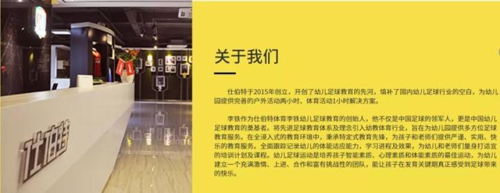企查查还显示:仕伯特体育致力于幼儿足球教育。仕伯特体育官网则介绍称:仕伯特填补了国内幼儿足球行业的空白。李铁则是仕伯特体育李铁幼儿足球教育的创始人。