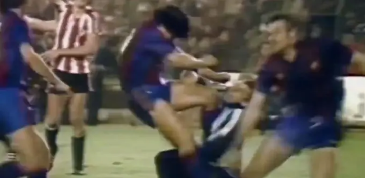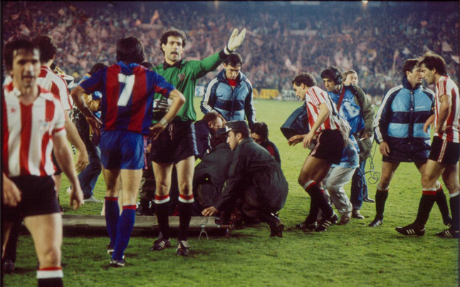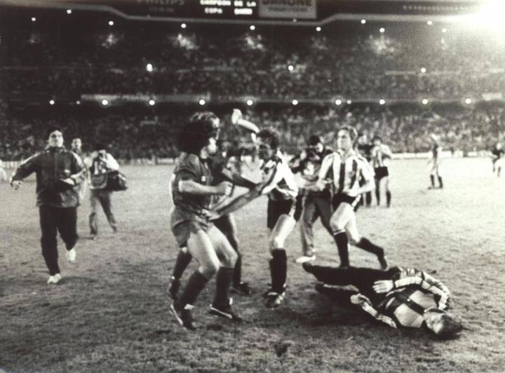 老照片:导致马拉多纳离开巴萨的那场比赛1983/...足球奇妙冒险 @懂球帝2021-11-24 11:22老照片:导致马拉多纳离开巴萨的那场比赛 1983/84赛季国王杯决赛,巴萨0-1毕尔巴鄂竞技;终场哨响之后,忍受了整场侵犯与挑衅的马拉多纳爆发了,攻击了毕尔巴鄂球员索拉,紧接着在看台上的西班牙国王面前,两队球员上演了一出全武行展开更多