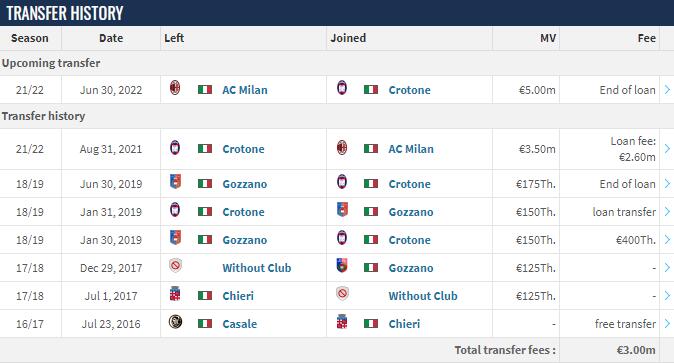 2021年的夏窗截止日,他租借加盟了米兰。11月,他在欧冠正赛取得了进球。