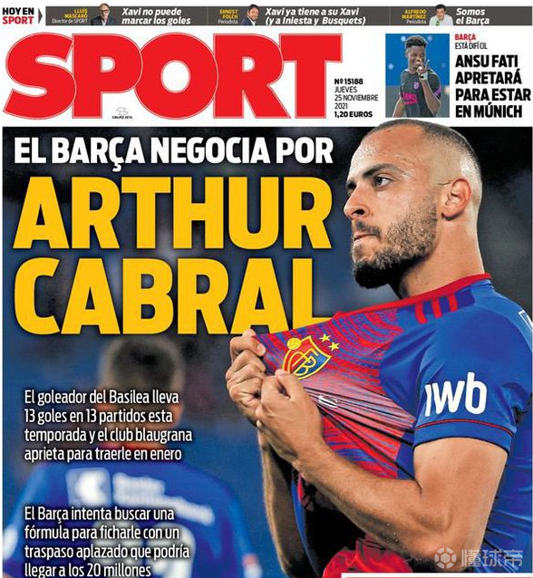 巴塞罗那有意引进巴塞尔前锋亚瑟·卡布拉尔:据《体育报》报道,巴塞罗那希望在一月份签下巴塞尔前锋阿图尔·卡布拉尔。 巴萨俱乐部已经在商量将这位前帕尔梅拉斯球星带到诺坎普,他得到了前巴萨球星德科的批准。 新闻来源:https://www.sport.es/es/noticias/barca/barca-negocia-arthur-cabral-12887554