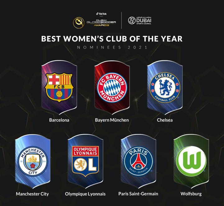 年度最佳女足俱乐部候选名单: