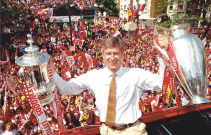 温格开始尝试改变球员的饮食结构,也因此获得了“教授”的昵称。他对球员要求格外严格,以至于球员们在前往第一场比赛的大巴上齐声高呼:“我们要吃巧克力棒!我们要吃巧克力棒!”。但他的方法立竿见影——相较于1996-97赛季联赛第三的排名,阿森纳在温格任职的第一个完整赛季夺得英超冠军,并2-0战胜纽卡斯尔联,将足总杯冠军收入囊中。