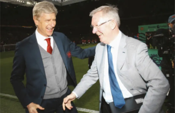 温格的告别仪式持续了七场比赛。卸任声明发布后的第九天,他带着他的阿森纳最后一次前往老拉特福德球场。赛前弗格森爵士为他献上礼物,为两人之间的竞争画上了动人的休止符。温格在自传中透露,14年前,曼联结束阿森纳49场不败战绩赛后,两人在老拉特福德相互推攘了起来。