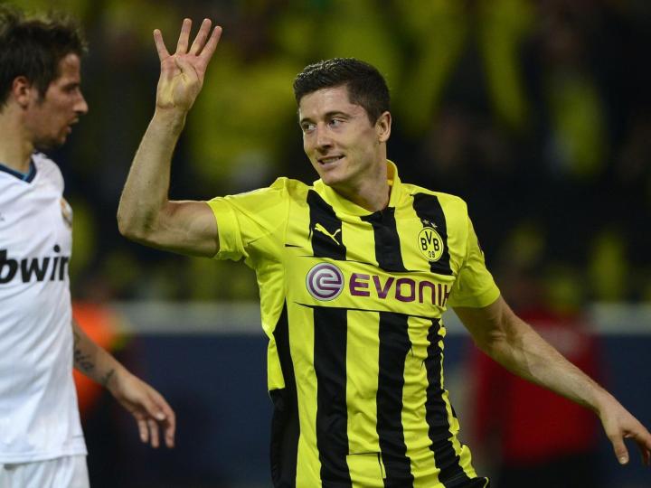 莱万就是在这场比赛中打进了四个进球: